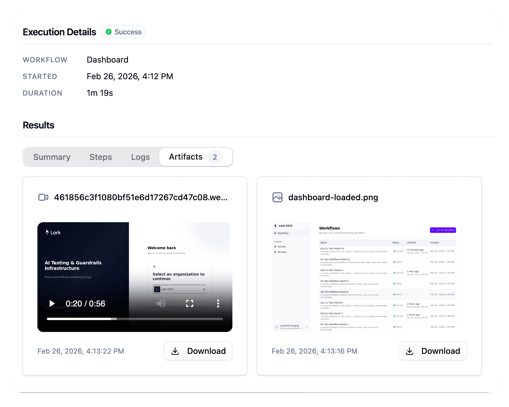 Get detailed test results once the workflow is finished.